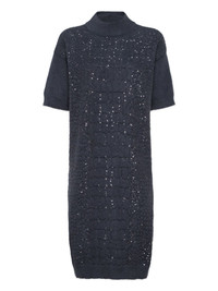 Wool turtle-neck dress [ SKU: 10195131840 ] navy blue high neck short sleeves sequin embellishment crocodile motif mohair wool blend Composition FABRIC 46% MOHAIR 54% Reference MBP240A94C8901 Made in Italy