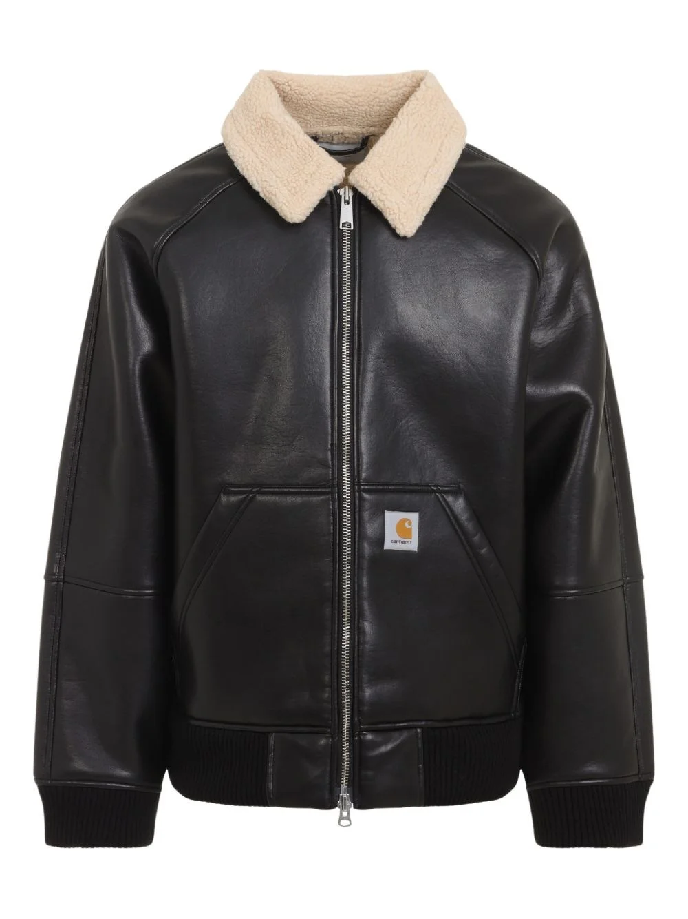 Faux leather jacket [ SKU: 10191822722 ] black ribbed trims zip fastening front pocket logo patch shearling collar Composition Synthetic->viscose33.0 % Synthetic->Polyurethane67.0 % Reference I0359741LMXX