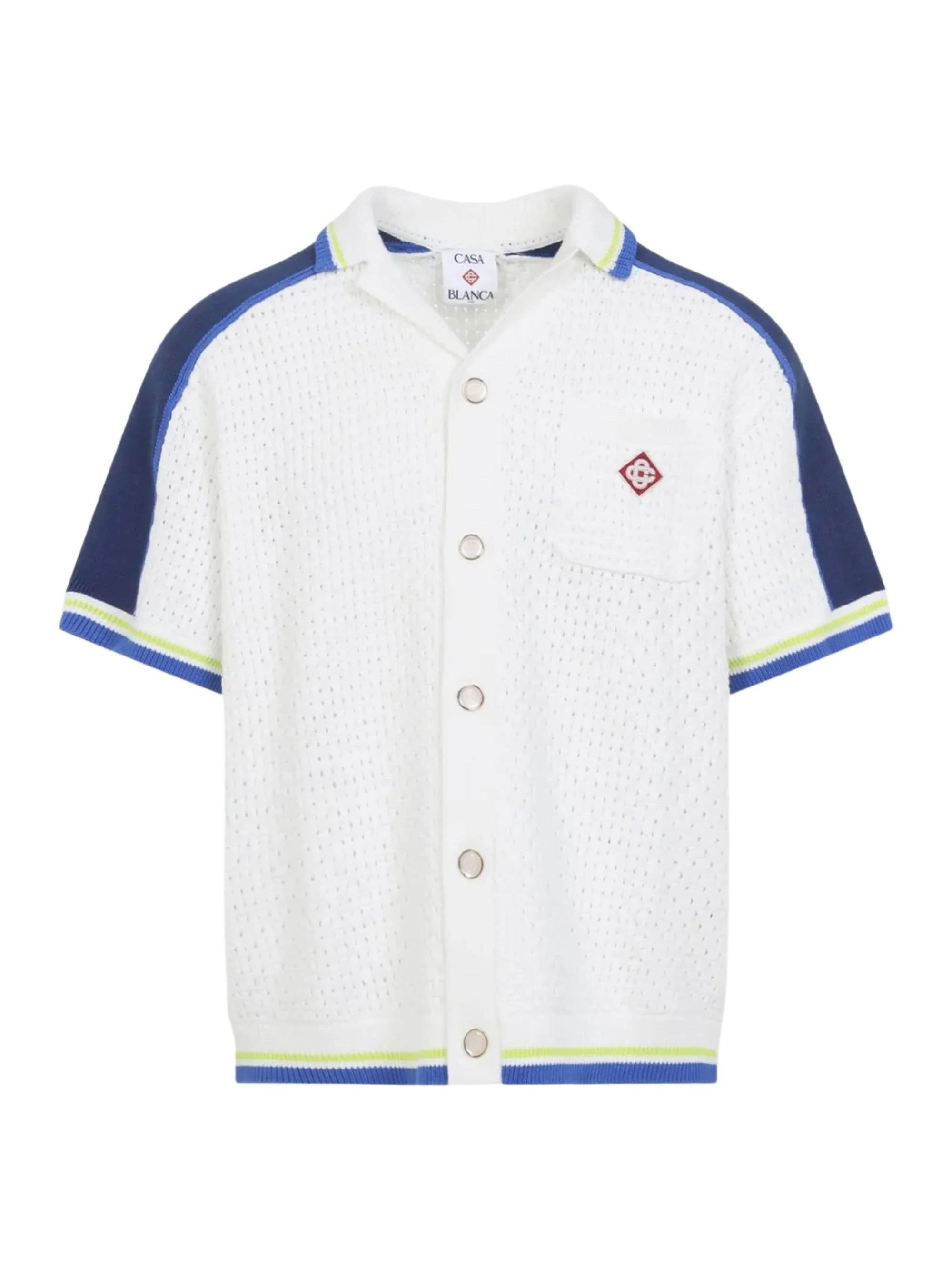Crochet shirt [ SKU: 11458439896 ] The Crochet shirt by Casablanca embodies sophistication in the realm of luxury clothing. This shirt features exquisite crochet detailing, offering a unique twist to a classic silhouette. Ideal for both casual outings and refined gatherings, it pairs beautifully with tailored trousers or relaxed shorts, making it a versatile addition to your wardrobe. Elevate your style effortlessly with this distinctive piece that captures attention and exudes elegance. Composition 52% COTTON 48% POLYESTER Reference MSS26KW131001COTTONBLEND Made in China