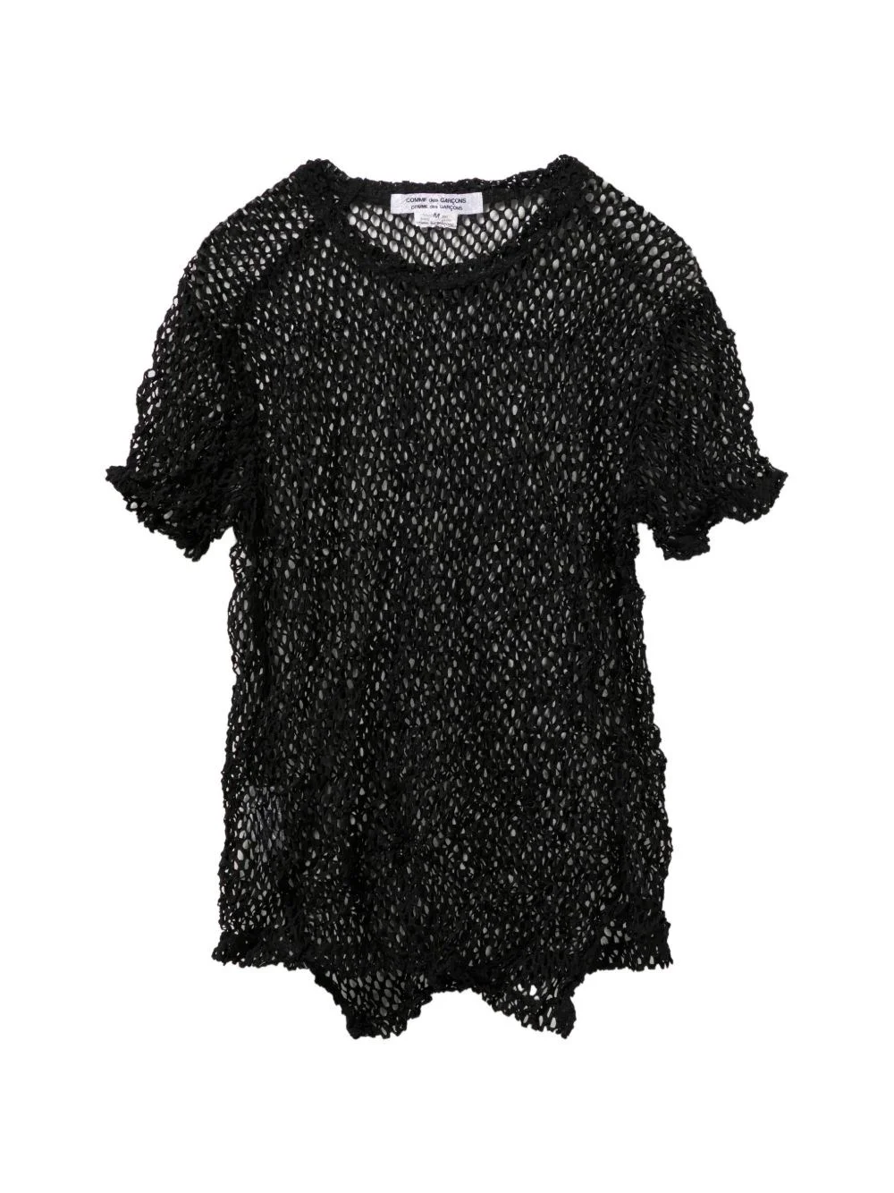 Open-knit t-shirt [ SKU: 10194564496 ] The Open-knit t-shirt by Comme des Garcons comme des Garcons redefines casual elegance within the realm of luxury clothing. This distinctive piece features a fishnet design with short sleeves and a classic crew neck, making it an ideal choice for sophisticated layering or standalone statements. Perfect for both relaxed day outings and stylish evening events, this t-shirt complements tailored trousers or a sleek skirt, enhancing your ensemble with a touch of modern artistry. Embrace its unique aesthetic to elevate your wardrobe with a statement of contemporary fashion. Composition Polyester 100% Reference RQT0140511 Made in Japan