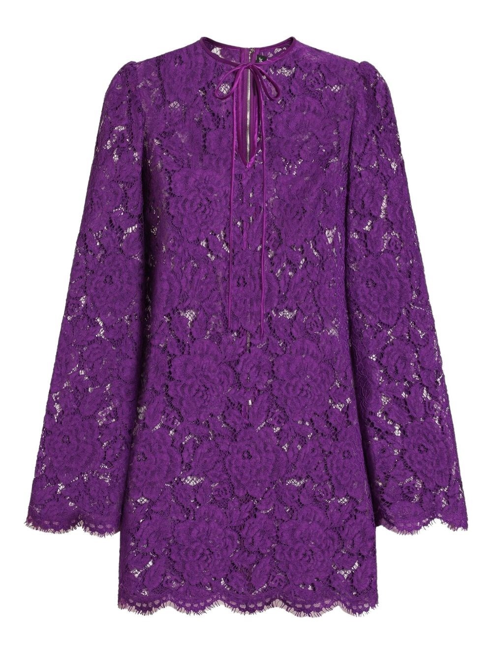 Lace mini dress [ SKU: 10191301585 ] amethyst purple rear zip fastening crew neck front tie fastening bell sleeves Reference F6DJOTHLM7LF0571 Made in Italy
