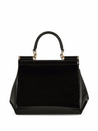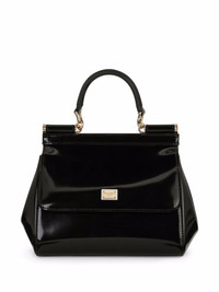 Sicily medium leather handbag [ SKU: 10118577498 ] black calf leather polished finish gold-tone logo plaque single rounded top handle adjustable detachable shoulder strap front flap closure main compartment internal slip pocket internal logo stamp leopard print lining This piece comes complete with a protective dust bag. Composition Exterior: calf leather 100%, Lining: 88% cotton, calfskin 12% Reference BB6003A103780999 Made in Italy Size and Fit Width 7,87 in / 20 cm Height 7,28 in / 18,5 cm Depth 3,94 in / 10 cm Handle 11,81 in / 30 cm