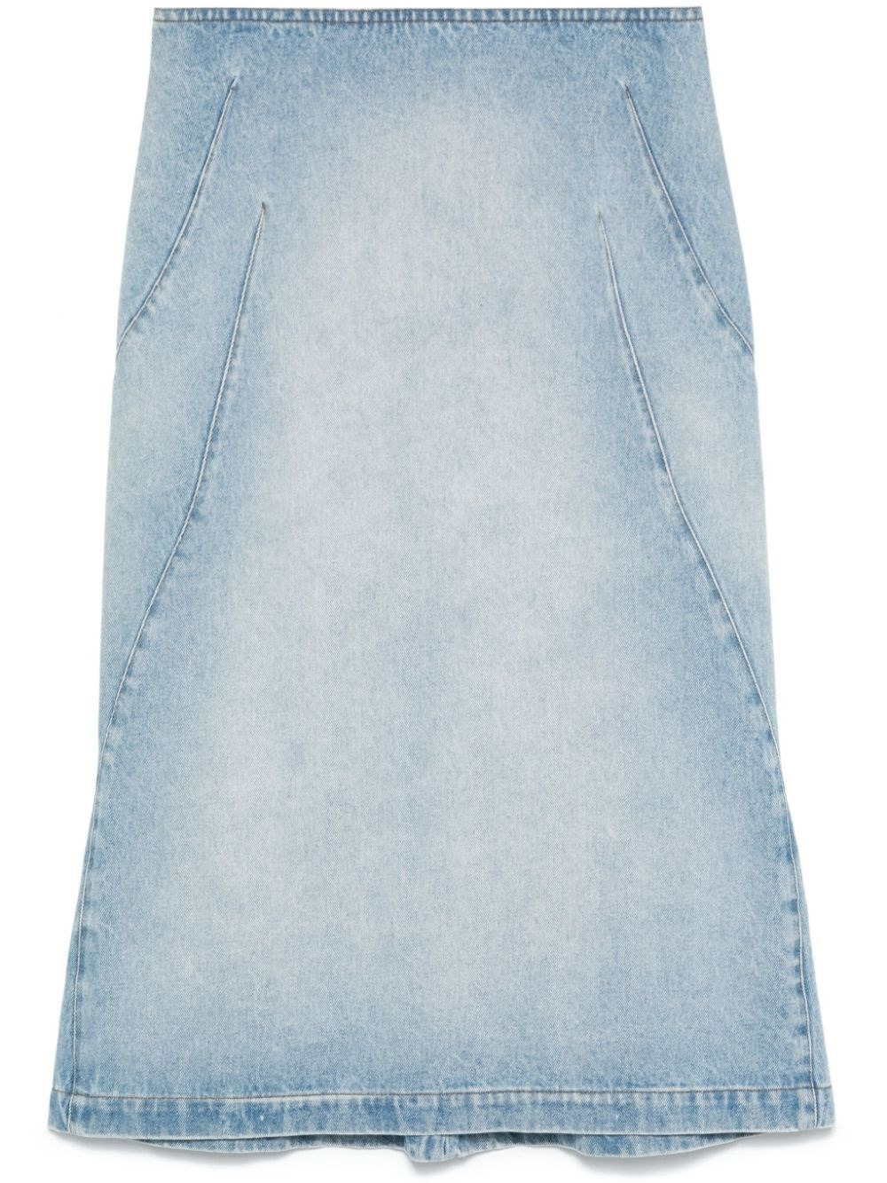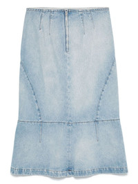 Denim midi skirt [ SKU: 10115784438 ] light blue cotton washed denim concealed rear hook and zip fastening dart detailing flared hem below-knee length Composition Cotton 100% Reference 0108259391514 Made in Italy Size and Fit This piece fits true to size. We recommend you get your regular size Model is 1,75m / 5ft 8in wearing size 36 (FR)