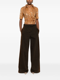 Penn cotton trousers [ SKU: 10195711732 ] brown front button and zip fastening belt loops side slit pockets wide leg Reference 0109582397703