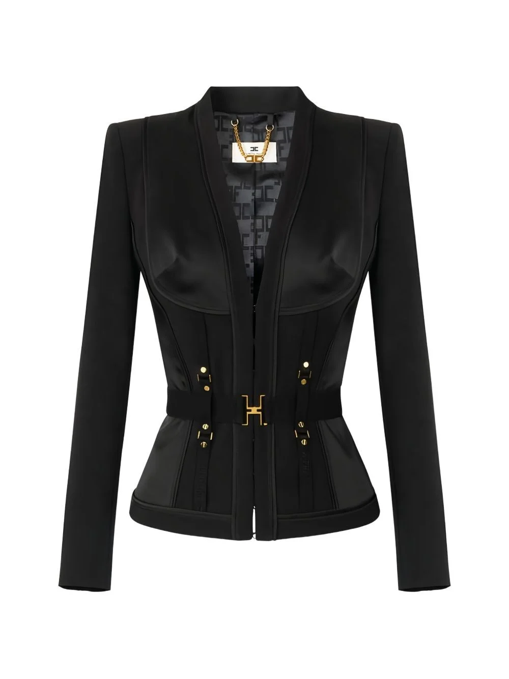 Single-breasted jacket [ SKU: 10194856336 ] The Single-breasted jacket by Elisabetta Franchi is a statement piece in the realm of luxury fashion. This sophisticated jacket features a tailored silhouette, exuding elegance and style. Perfect for both professional settings and evening events, it can be paired with tailored trousers or a chic dress for a polished look. Elevate your wardrobe with this essential garment that embodies modern sophistication and versatility. Composition 95% Polyester 5% Elastane Reference GI23362E2110 Made in Italy