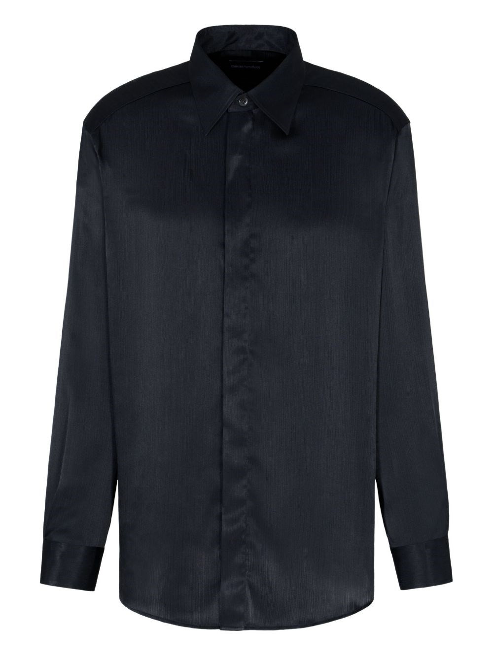 Classic shirt [ SKU: 10196082780 ] black long sleeves concealed button fastening point collar Composition Wool or fine animal hair->Wool15.0 % Synthetic->viscose85.0 % Reference EM003630TE17057UC001 Made in Romania