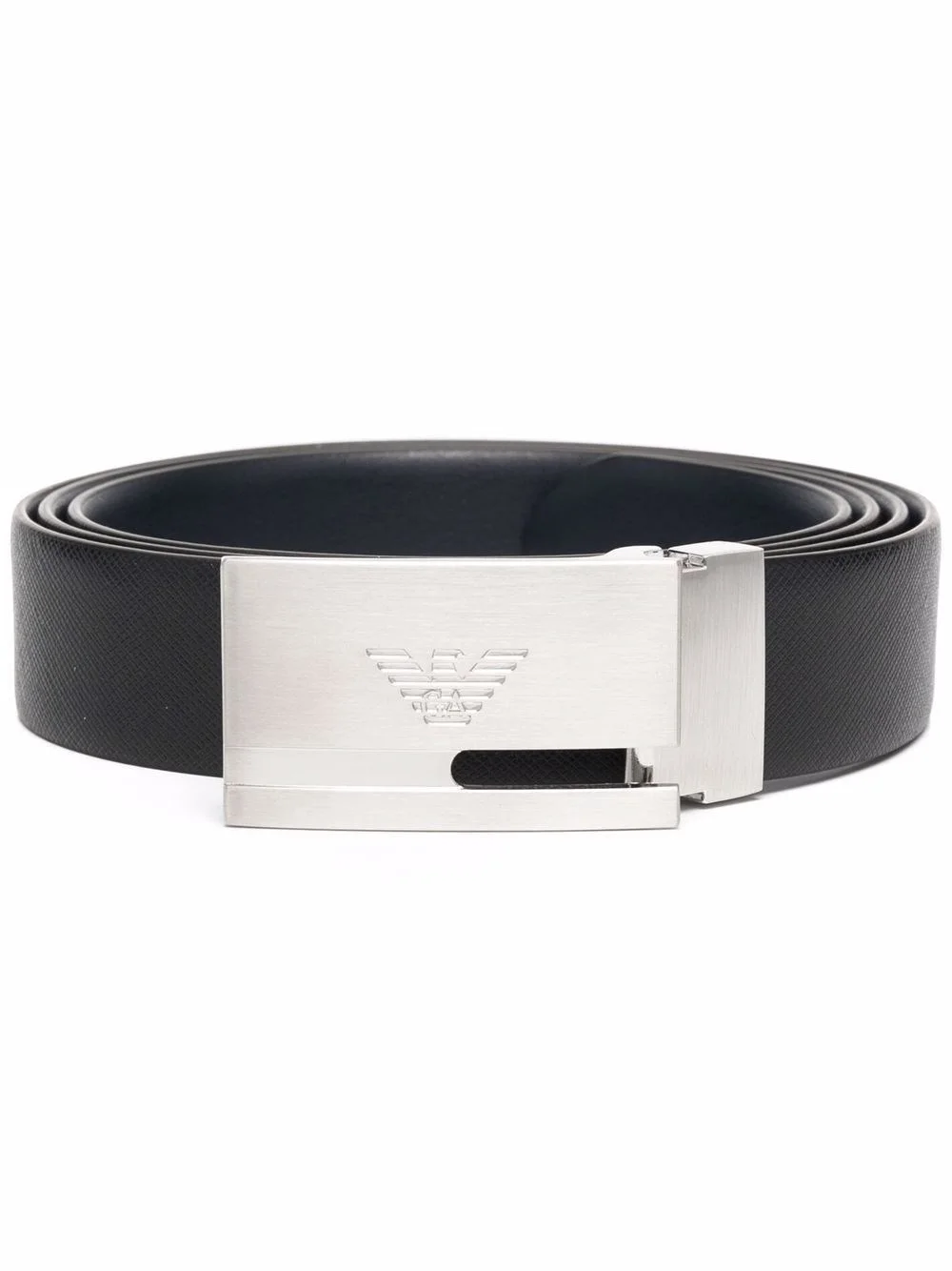 Reversible belt in two-tone leather with all-over embossed eagle