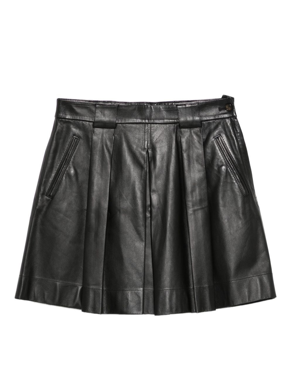 Leather skirt [ SKU: 10191584874 ] black leather pleated design A-line side pockets rear welt-pockets side button-fastening Reference EW001174AF17166UC001 Made in India