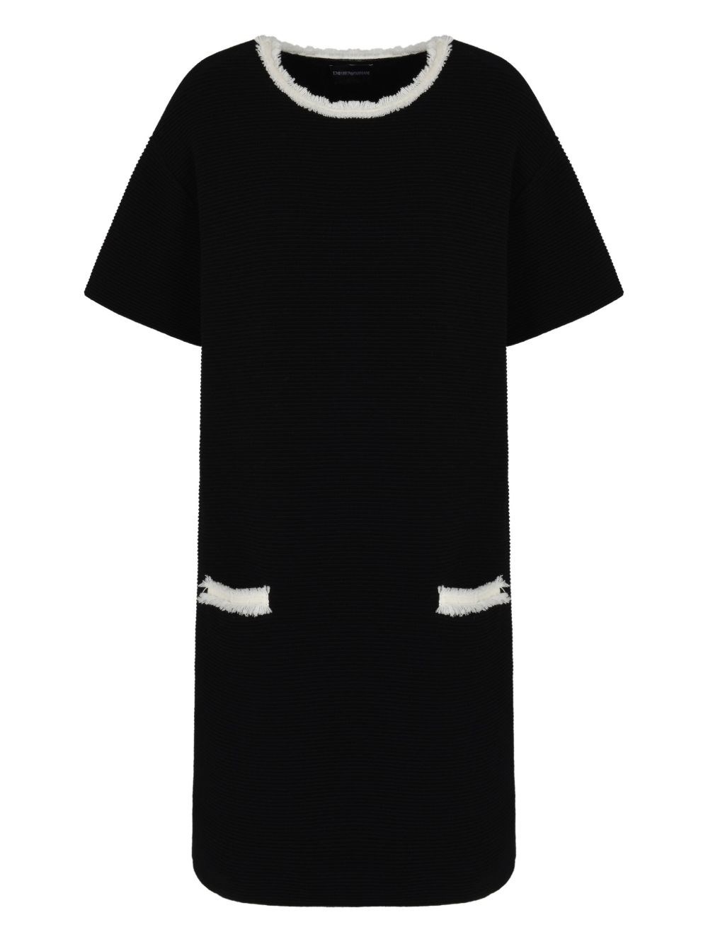 Short dress [ SKU: 10197719910 ] black ribbed texture short sleeves round neck frayed trim patch pockets Reference EW001237AF18159MC006 Made in China