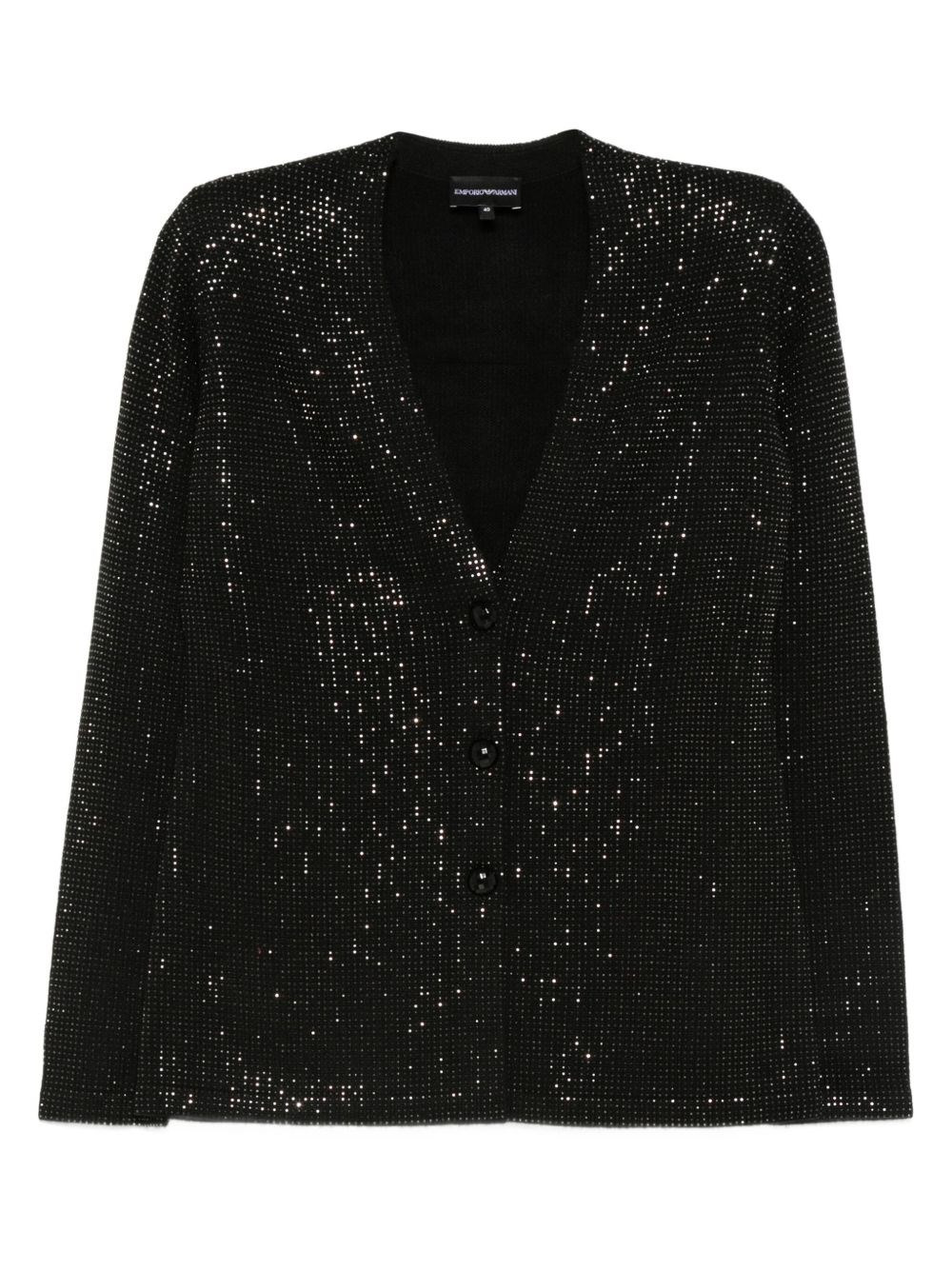 Wool blend single-breasted jacket [ SKU: 10195790680 ] black sequin embellishment v-neck long sleeves button fastening straight hem Composition 50% ACRYLIC, 4% POLYAMIDE, 46% VIRGIN WOOL Reference EW002688AF19921UC001 Made in China