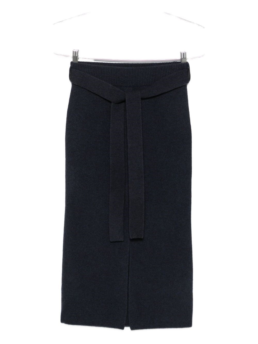 Wool midi skirt [ SKU: 10193448020 ] navy blue ribbed knit fitted silhouette centre-back vent self-tie belt Reference EW001250AF19918UB092 Made in China