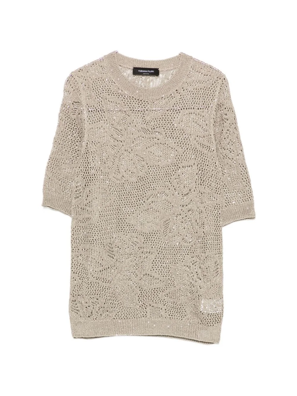 Openwork t-shirt [ SKU: 10198683703 ] The Openwork t-shirt from Fabiana Filippi is a luxurious addition to any wardrobe. This exquisite piece features a sophisticated open-knit design, complemented by a classic crew neck and short sleeves. Perfect for an effortlessly chic look, it can be styled with tailored trousers for a refined day at the office or paired with denim for a casual weekend outing. Its versatile design allows for seamless transitions from day to night, making it a must-have for the modern woman seeking elegance in her everyday attire. Reference MAD276F131D8641274