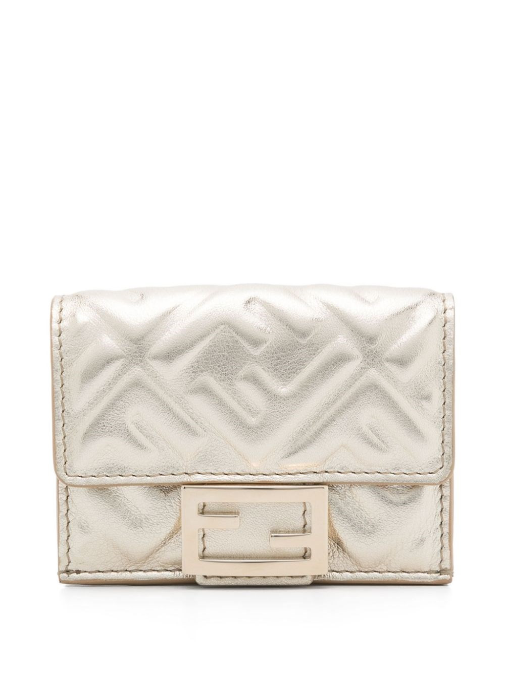Baguette leather trifold wallet [ SKU: 10198472246 ] gold-tone foldover top with press-stud fastening internal note compartments FF motif Composition Calf leather 100% Reference 8M0395ARO5F0FZ0 Size and Fit Heel 2,8 in / 7 cm; Platform 3,9 in / 10 cm