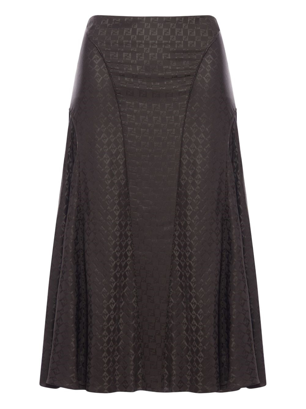 FF jacquard silk skirt [ SKU: 10196951919 ] dark brown embossed-logo pattern A-line shape concealed-zip fastening fitted waistband midi length Composition 100%SE+FOD.:100%SE+NR2BOTT:MAD Reference FQ7688AUQGF1T6H Made in Italy