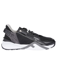 Flusso di scarpe da ginnastica [ SKU: 11455759996 ] Sneaker Flow di FENDI nera in pelle e suede grigia, Fendi Flow stampato a rilievo sui talloni, zip sul lato e suola ondulata con F intagliata. Composition 100% CALF SKIN Reference 7E1392AY9WF1EX4 Made in Italy