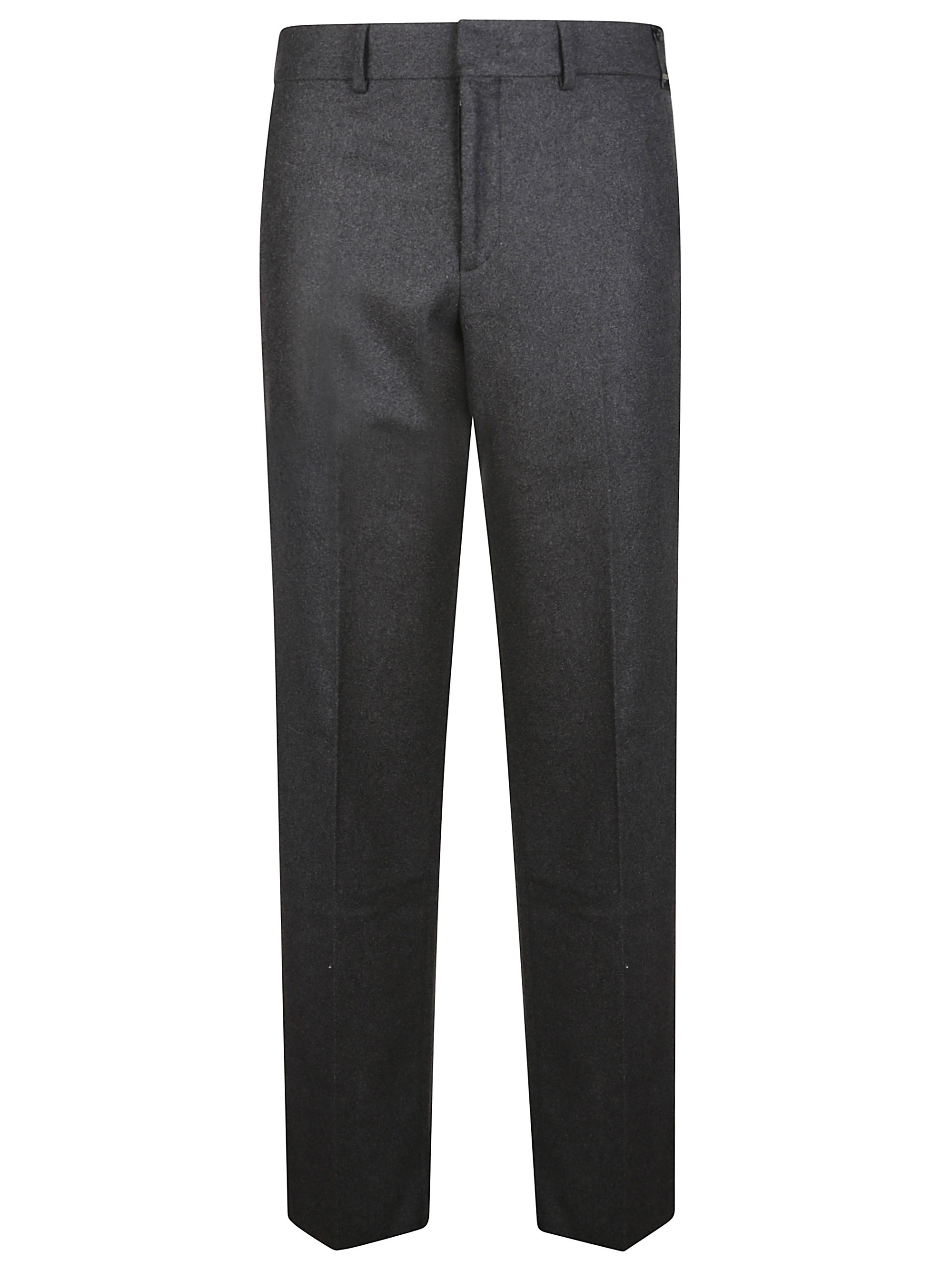 Pantalone sartoriale [ SKU: 11309750389 ] Tailored trousers by FENDI in dark grey cashmere blend with melange effect, belt loops, hidden diagonal side and back pockets, pressed crease, straight fit and hidden front fastening with button, hook and zip. Composition 98%WS,2%EA+100%VI+NR1BOTT:MADR Reference FB1020ASCAF0UU0 Made in Italy