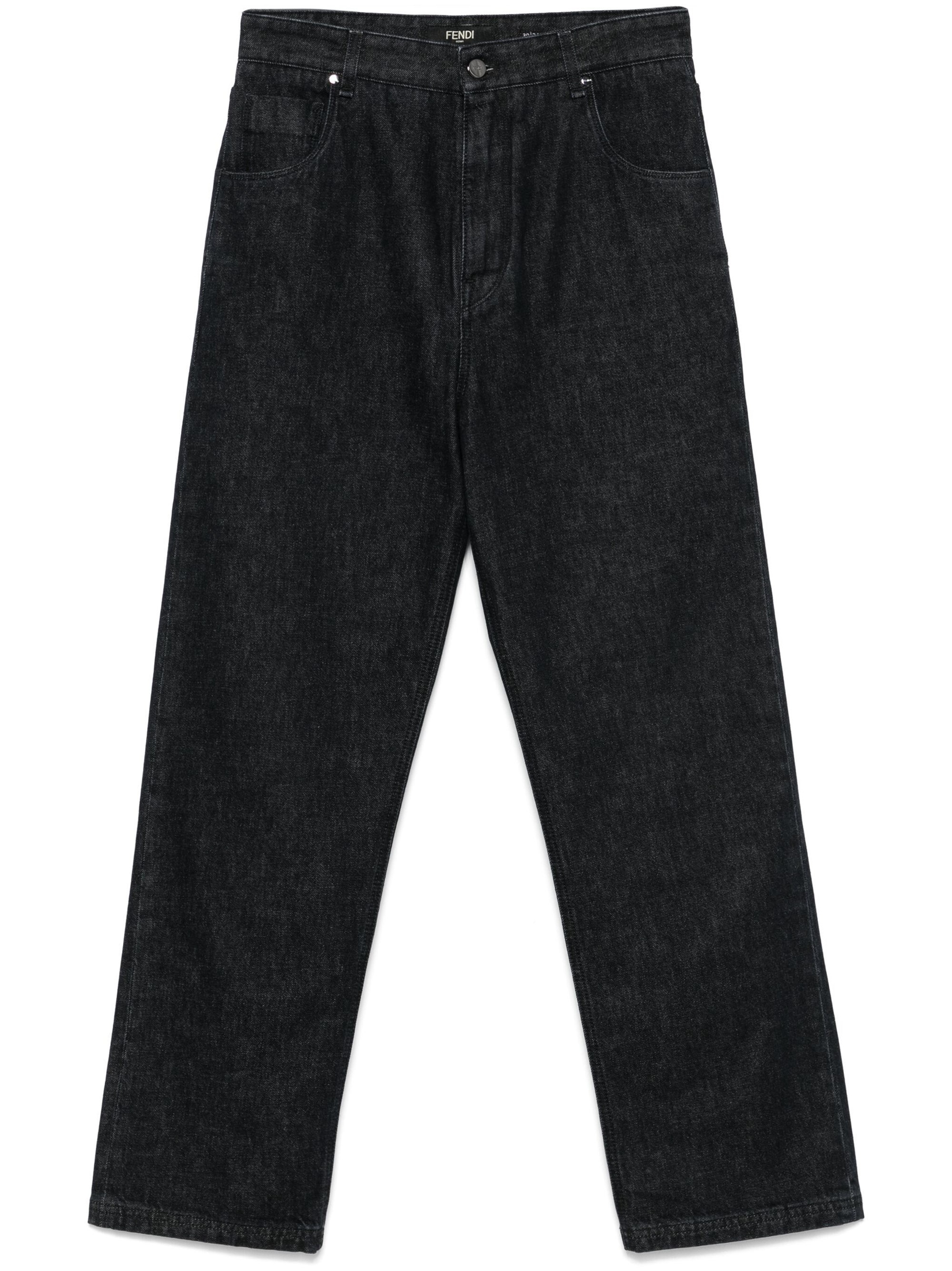 Straight Jeans [ SKU: 11303068765 ] Classic black FENDI jeans with belt loops and back logo application. Composition 100%CO+FOD.:65%PL,35%CO Reference FLP285ATK3F0QA1 Made in Italy