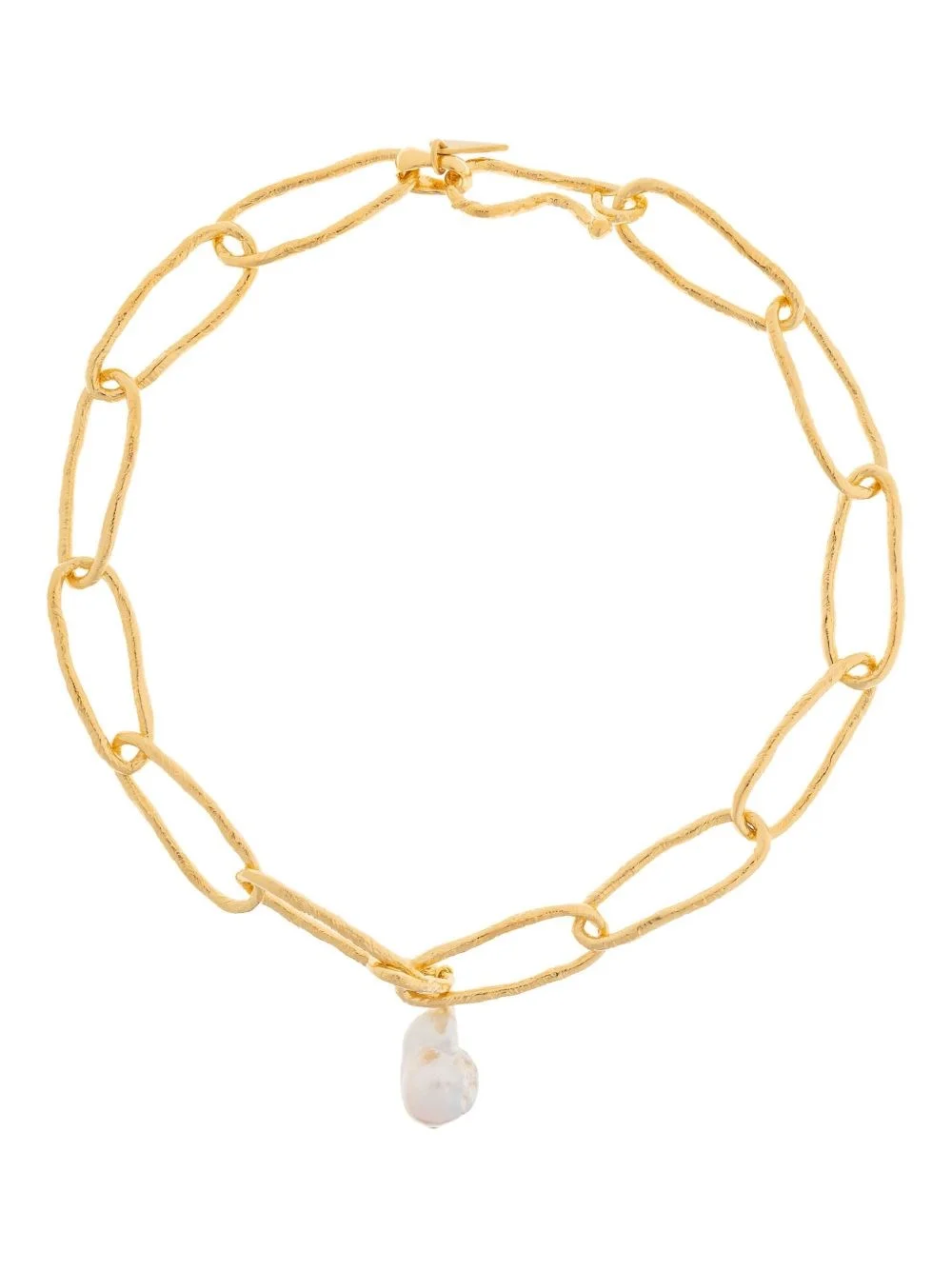 hammered-link pearl necklace