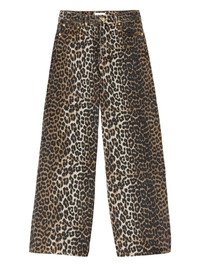 Leopard Print Flock Denim Baggy Jeans