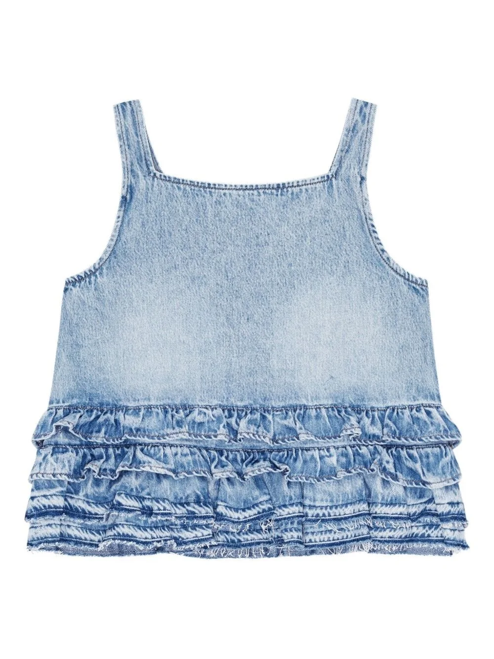 Organic cotton denim top [ SKU: 10193507731 ] Denim top with ruffles, thin shoulder straps, crew neck with backless. Composition Cotton 60% Lyocell 40% Reference J1818564