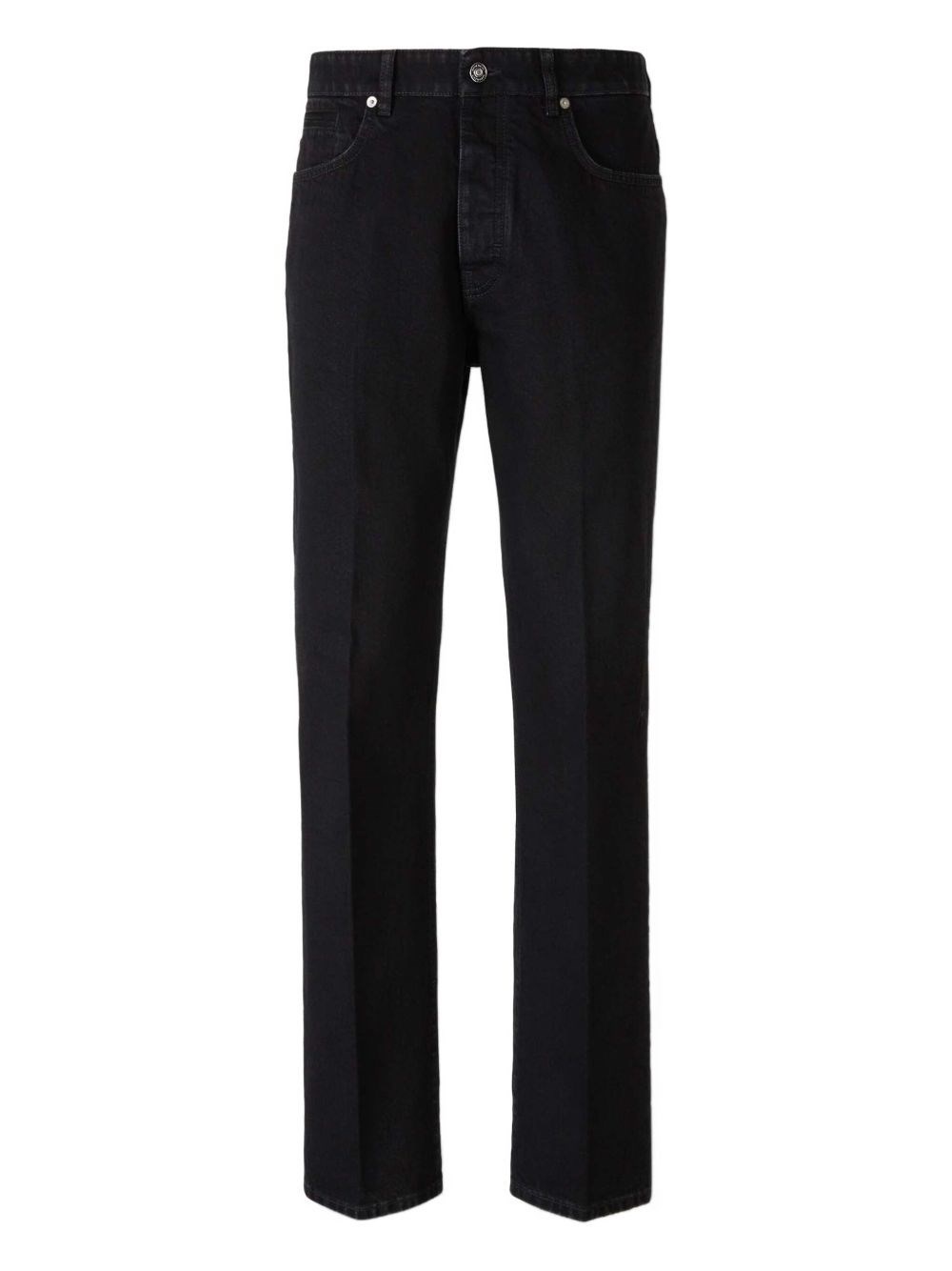 Cotton trousers [ SKU: 11308536391 ] black tonal stitching five pockets back logo embroidery button fly Composition 99% COTTON 1% ELASTANE Reference BM51MK516K001 Made in Italy