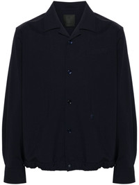 Wool shirt [ SKU: 11302820850 ] Midnight blue GIVENCHY wool shirt with logo plaque, Cuban collar, buttoned hems, drawstring hem, chest welt pocket and button closure. Composition 4% ELASTANE 38% POLYAMIDE 58% WOOL Reference BM610714PY403 Made in Portugal