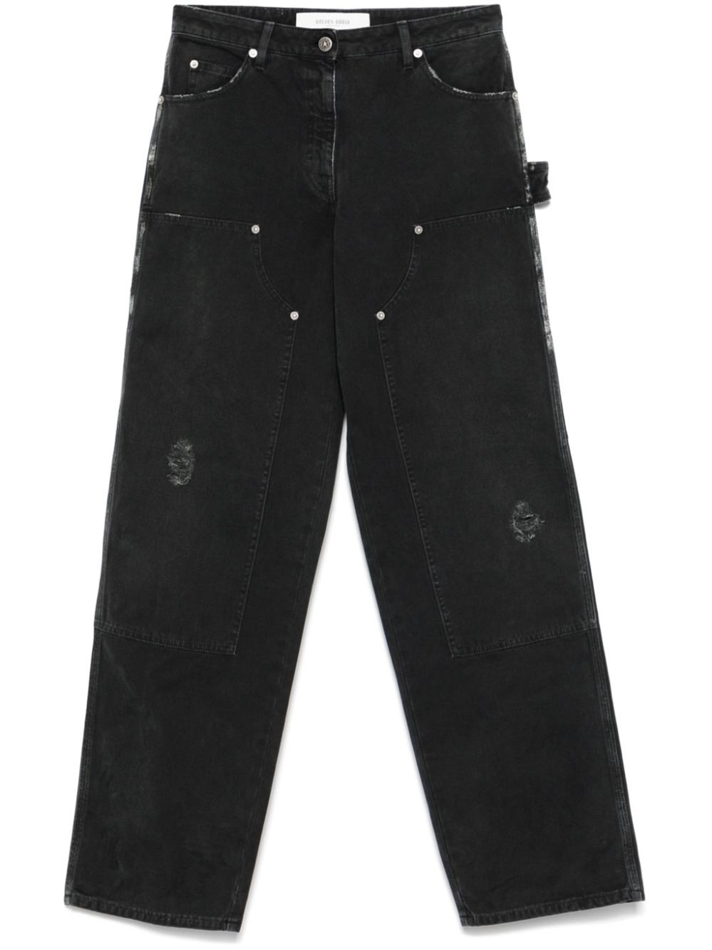 Denim cotton jeans [ SKU: 10193590519 ] black concealed fly and button fastening belt loops classic five pockets distressed finish Composition Cotton 100% Reference GWP01942P00192190100 Made in Italy Size and Fit This piece fits true to size. We recommend you get your regular size Model is 1,75m / 5ft 8in wearing size 40 (IT)
