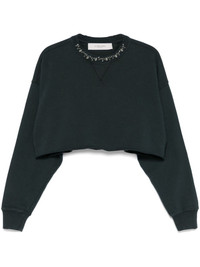 Organic cotton cropped sweatshirt [ SKU: 10193469935 ] black ribbed cuffs and hem crystal embellishment raw-cut hem Composition Cotton 100% Reference GWP02203P00189690456 Made in Italy Size and Fit This piece fits true to size. We recommend you get your regular size Model is 1,75m / 5ft 8in wearing size S