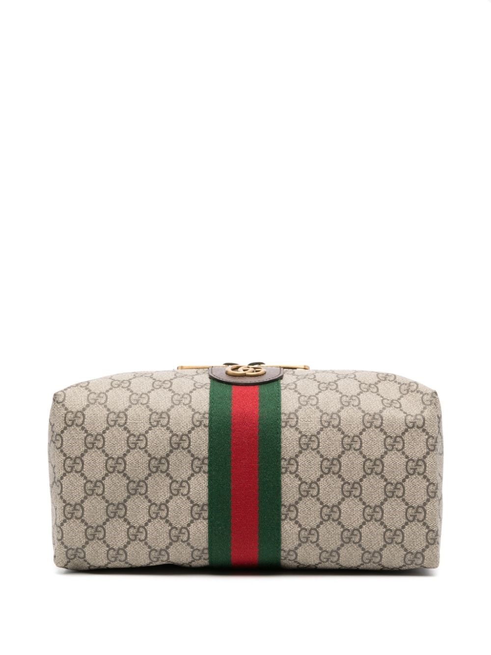 Savoy Leather-Trimmed Coated-Canvas Jacquard Wash Bag