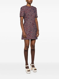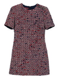 Boucle wool short dress [ SKU: 10195385343 ] blue speckled tweed short sleeves crew neck button embellishment Composition Wool or fine animal hair->Wool86.0 % Synthetic->Acetate75.0 % Synthetic->Polyester3.0 % Synthetic->Polyamide11.0 % Natural (Other)->Silk25.0 % Reference 841043ZATNT4956 Made in Italy