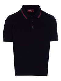 Polo shirt with logo [ SKU: 11307273322 ] navy blue front button placket short sleeves signature Web detailing Reference 814994XKEKK4345