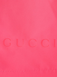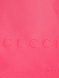 Sea boxer [ SKU: 11308078557 ] GUCCI fuchsia swim trunks with logo, mesh lining, side pockets, back pocket and elasticated waistband with drawstring. Composition 100% POLYESTER Reference 787899XHAG25216 Made in Italy