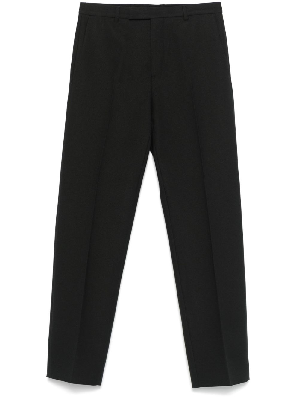 Twill trousers [ SKU: 11300580404 ] GUCCI black twill trousers with pressed crease, belt loops, embroidered logo on the back, pockets and front fastening with zip, hooks and button. Composition 100% POLYESTER Reference 814299Z7AMR1000 Made in Italy