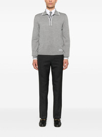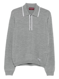 Wool long-sleeves polo shirt [ SKU: 10197710183 ] grey wool long sleeves polo collar button fastening perforated detailing Reference 824573XKESP1130 Made in Italy