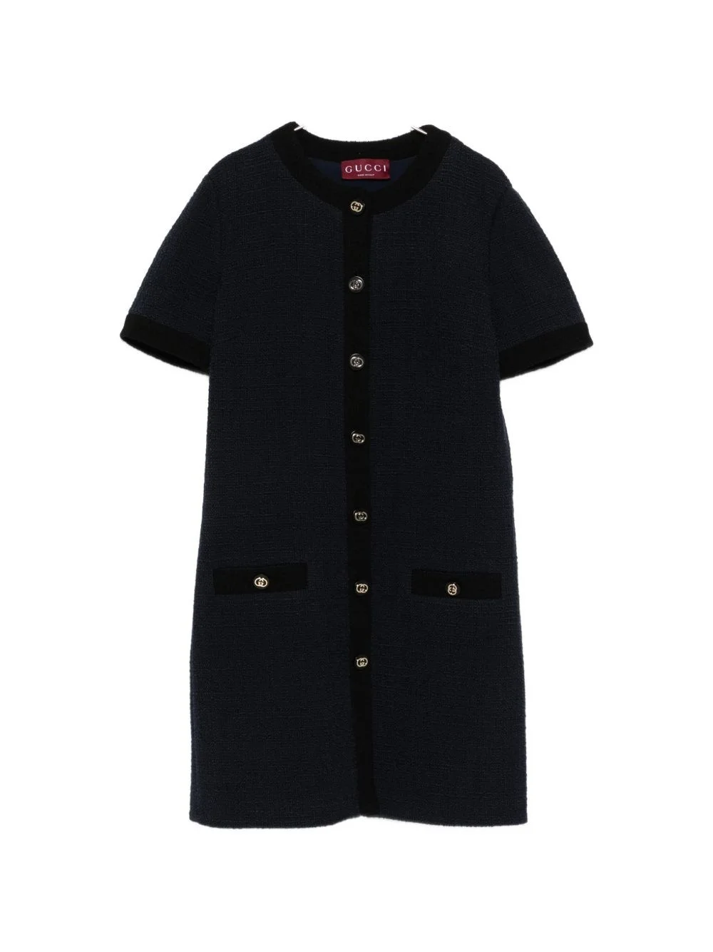 Wool tweed dress [ SKU: 10190054357 ] blue button fastening two pockets short sleeves round neck Composition 100% Wool Mix Reference 853039ZATFF4294 Made in Italy