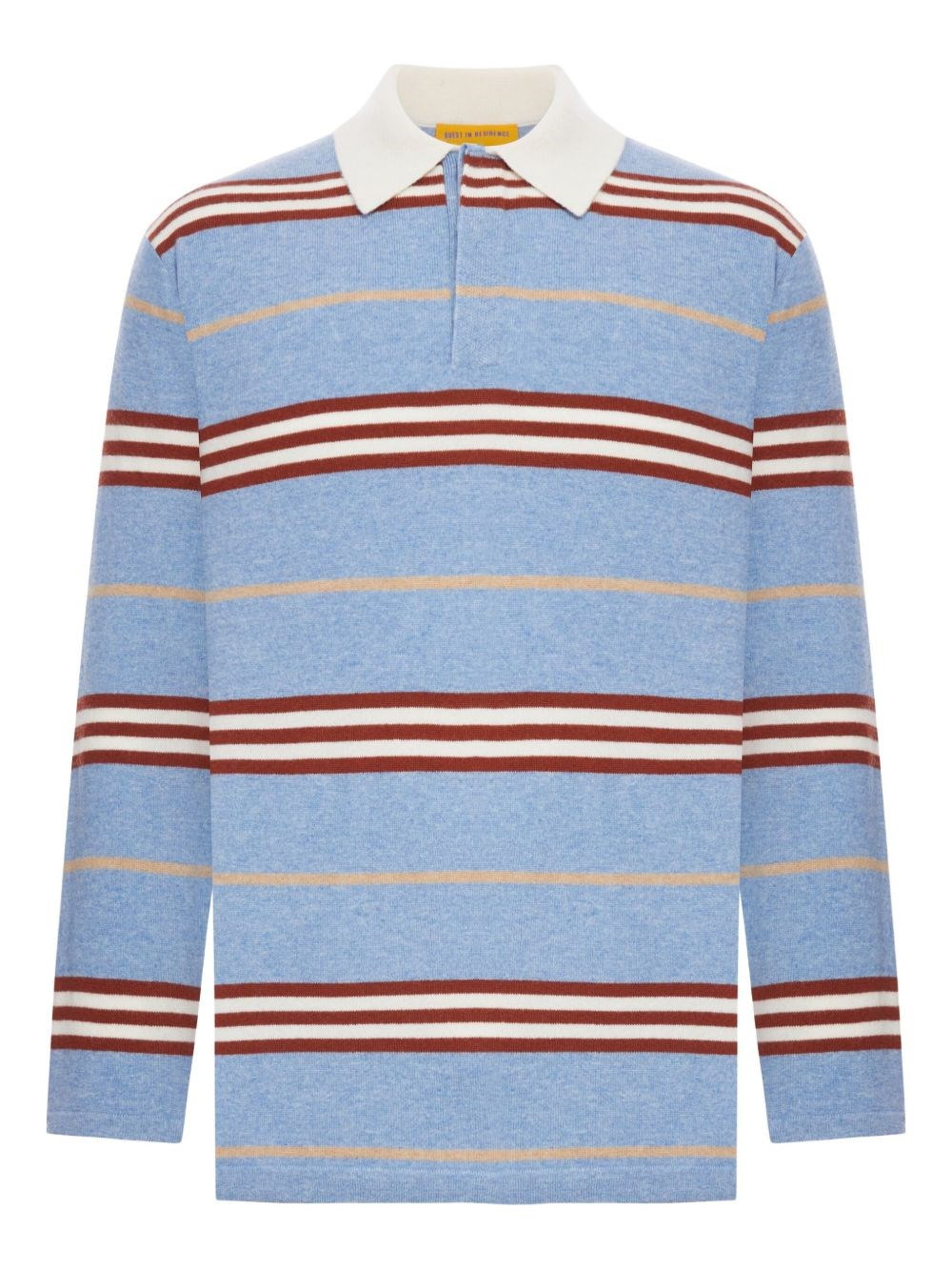 Cashmere striped polo shirt [ SKU: 10196024565 ] blue horizontal stripes long sleeves polo collar two-button placket cashmere Reference U32010JMHRBCO