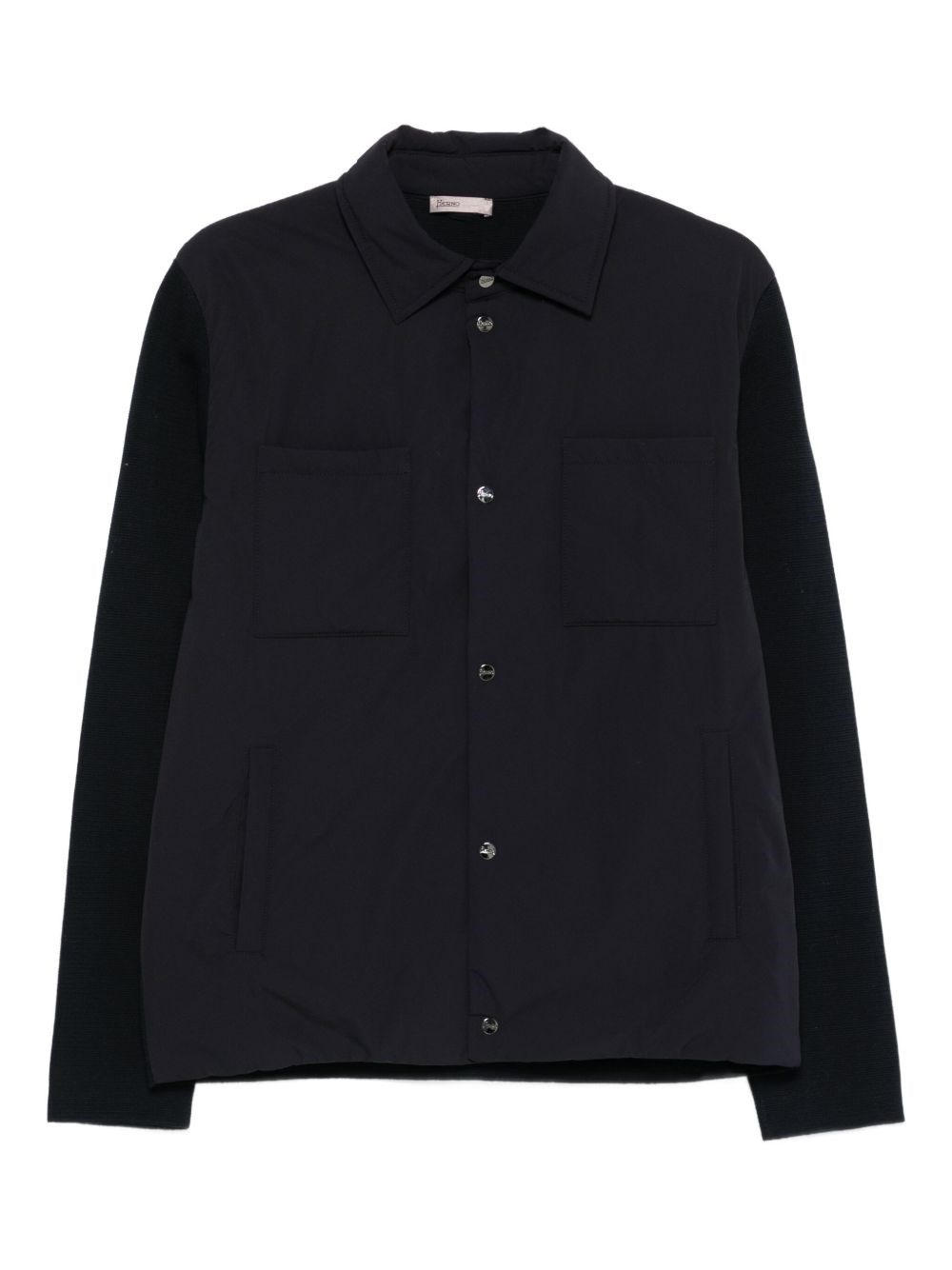 knitted-sleeve buttoned jacket
