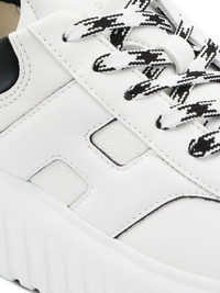 H-Stripes leather sneakers [ SKU: 10191744005 ] H-Stripes leather sneakers by Hogan embody luxury and sophistication in the footwear category. Perfect for both casual outings and more formal occasions, these sneakers can be effortlessly paired with tailored trousers or a chic dress. The unique design features distinct H-stripes, elevating your style while ensuring comfort. Ideal for social events or leisurely strolls, these sneakers add a touch of elegance to any outfit. Emphasizing sustainable practices and craftsmanship, they represent a commitment to quality and timeless fashion. A versatile addition to your wardrobe that speaks to a refined lifestyle. Reference HXW6450FE93UY80001