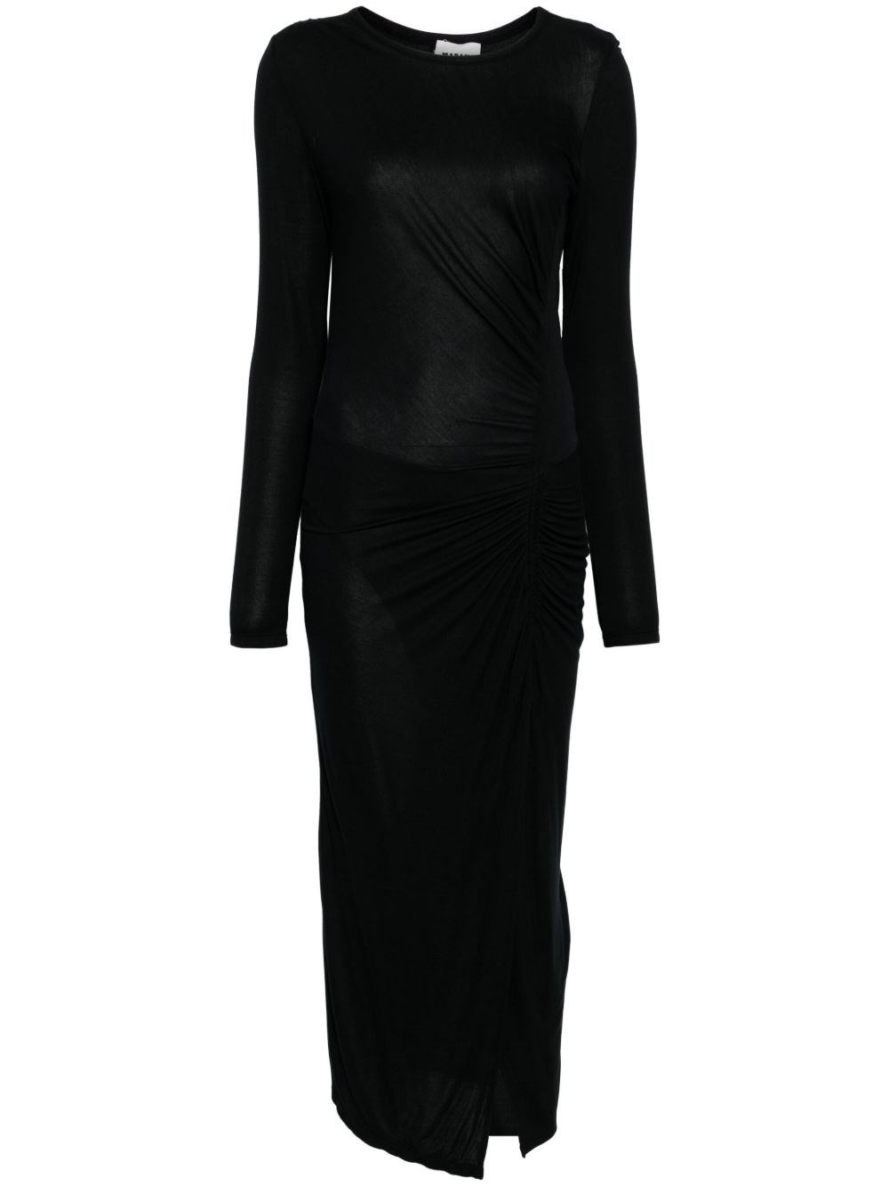 Jelina long dress [ SKU: 10195775198 ] black side slit ruched detailing round neck long sleeves Reference RO0349FB-C3K01E01BK Made in Portugal Size and Fit This piece fits true to size. We recommend you get your regular size Model is 1,75m / 5ft 8in wearing size 36 (FR)