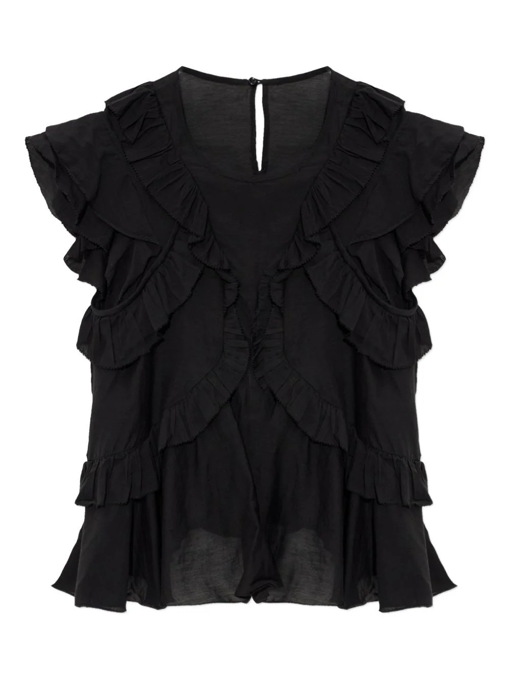Nalou cotton top [ SKU: 10191404912 ] The Nalou cotton top by MARANT ETOILE exemplifies sophistication in women’s fashion. This exquisite top seamlessly transitions from day to night, making it a versatile staple in any wardrobe. Pair it with tailored trousers for a chic office look or style it with a flowing skirt for an elegant evening out. The top features unique design elements that enhance its allure, such as subtle detailing that elevates its profile. Ideal for social gatherings, brunch with friends, or casual outings, the Nalou top adds a touch of luxury to everyday elegance. Crafted with care, it embodies a commitment to quality and style. Reference HT0828FA-B3J04E01BK Made in India