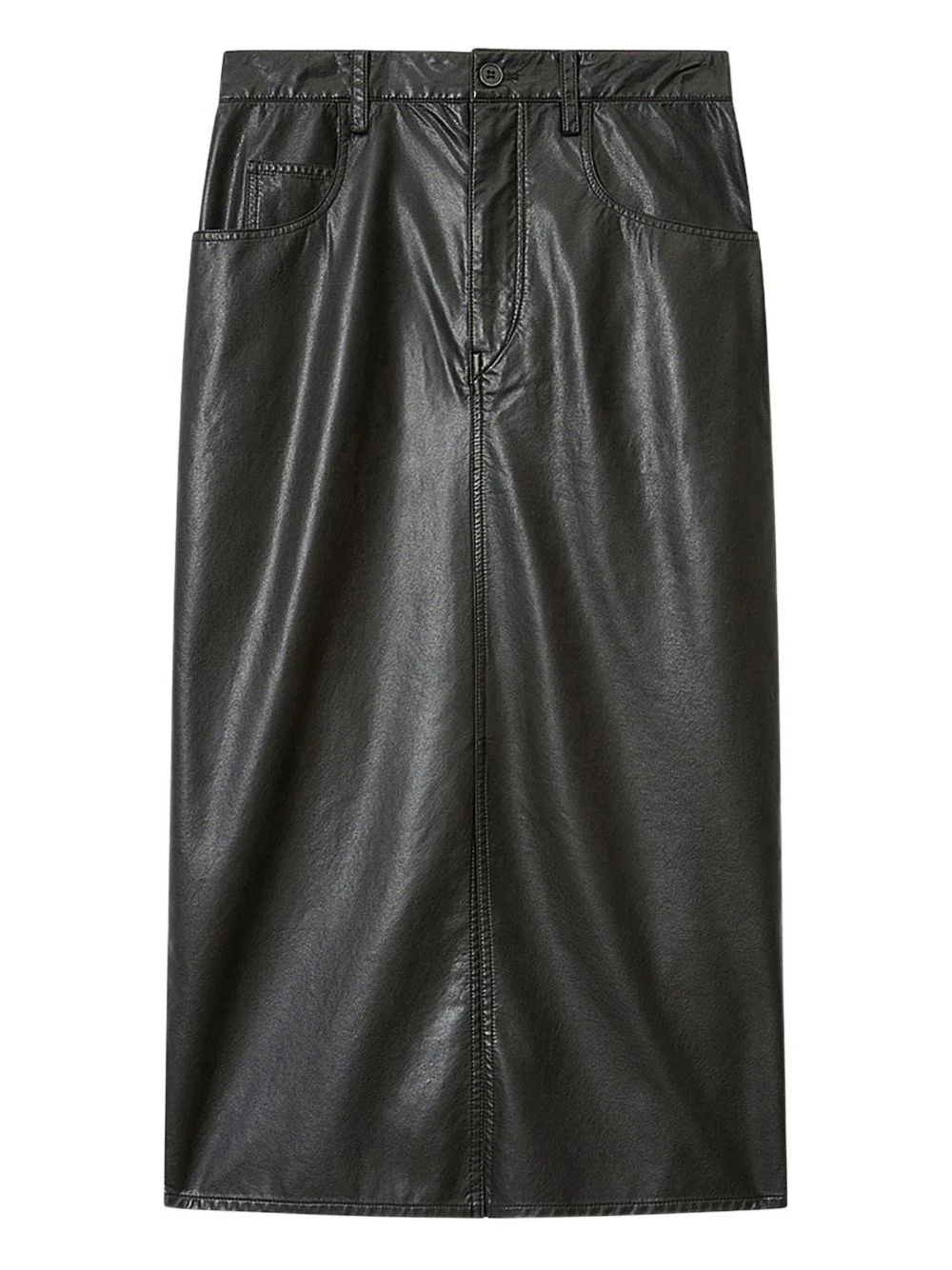 Nilauria faux leather skirt [ SKU: 10192356841 ] The Nilauria faux leather skirt by MARANT ETOILE embodies sophistication and contemporary style, making it a quintessential piece for your wardrobe. This versatile skirt can be effortlessly paired with a chic blouse for a refined office look or dressed down with a casual tee for weekend outings. Its unique design features subtle details that elevate its overall appeal, ensuring you stand out in any setting. Ideal for evening events or stylish brunches, this piece seamlessly integrates into various occasions, adding a touch of elegance to your ensemble. Embrace a sustainable choice with this fashion-forward item, crafted to enhance your style while being mindful of the environment. Reference JU0477FA-D1B03E01BK Made in India