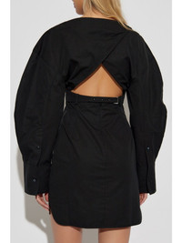 La Robe Chemise Casaco dress [ SKU: 10195691654 ] black cotton poplin texture yoke design layered details cut-out detailing belt loops belted waist silver-tone hardware boat neck rear zip fastening long puff sleeves side slits front patch pocket curved hem Composition Cotton 100% Reference 243DR1991519990 Made in Bulgaria Size and Fit This piece fits true to size. We recommend you get your regular size Model is 1,75m / 5ft 8in wearing size 36 (FR)