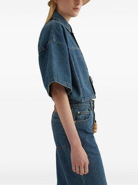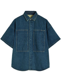 Denim cotton shirt [ SKU: 10192747732 ] blue cotton denim concealed front button fastening polo collar crop sleeves panelled design curved hem Composition Cotton 100% Reference J40DL0157J45291420 Made in Japan Size and Fit This piece fits true to size. We recommend you get your regular size Model is 1,75m / 5ft 8in wearing size S