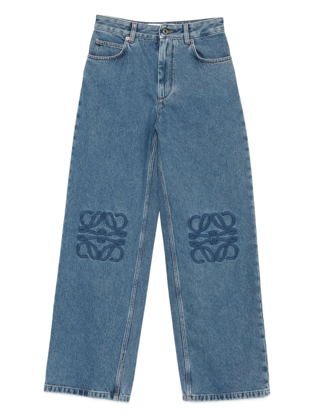 Anagram baggy jeans [ SKU: 10199859264 ] The Anagram baggy jeans by Loewe, a distinguished addition to your denim wardrobe, elegantly blend contemporary style with timeless craftsmanship. Featuring a striking embroidered logo, these jeans offer a straight leg and high waist design that flatters and enhances your silhouette. Perfect for casual outings or elevated daywear, pair them with a tailored blazer and ankle boots for a chic yet relaxed ensemble. Designed with sustainability in mind, these jeans are a testament to Loewe's commitment to responsible fashion, making them an essential piece for the conscious wardrobe. Composition Cotton 100% Reference S359Y11XEB5320 Made in ITALY