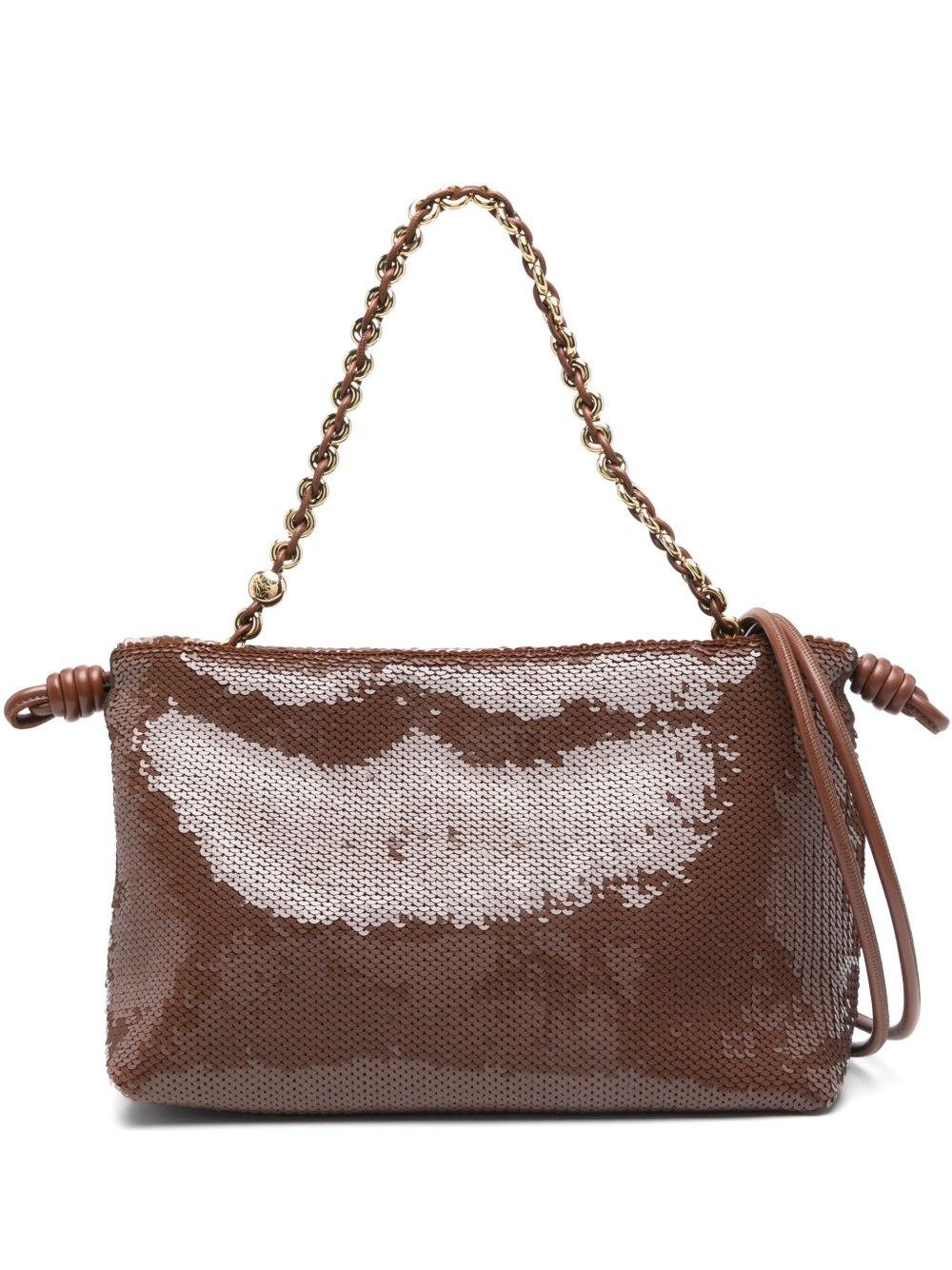 Flamenco medium sequined clutch [ SKU: 10197778192 ] Chocolate, drawstring closure and adjustable shoulder strap. Composition Calf leather 100% Reference A411FCRX623606 Made in Spain Size and Fit Width 12,99 in / 33 cm Height 7,87 in / 20 cm Depth 4,33 in / 11 cm Handle 26,77 in / 68 cm Strap 43,31 in / 110 cm