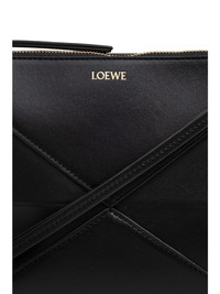 Puzzle Fold leather pouch [ SKU: 10191126998 ] Black clutch bag made of calfskin with raised stitching as decoration, solid colour, single compartment with zip closure. Composition Calf Leather 100% Reference C510PT1X011100 Size and Fit Width 9,06 in / 23 cm Height 6,1 in / 15,5 cm Depth 2,36 in / 6 cm