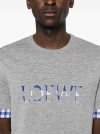 Wool and cotton blend t-shirt [ SKU: 10193252457 ] grey logo detail checked trim round neck short sleeves straight hem Reference H526Y55K151122 Made in ITALY