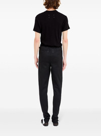 Cotton blend trousers [ SKU: 10194832008 ] black stripe detailing signature four-stitch logo elasticated drawstring waistband two side zip-fastening pockets ankle zips Composition Polyester 51% Cotton 49% Reference S50KA0675S23168900 Made in Italy Size and Fit This piece fits true to size. We recommend you get your regular size Model is 1,84m / 6ft 1in wearing size 48 (IT)