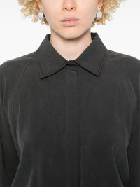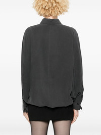 Silk bodysuit [ SKU: 10190431873 ] charcoal grey silk mesh panelling concealed front button fastening concealed press-stud fastening classic collar batwing sleeves French cuffs volumed back Just a reminder that this piece must be tried on over your own garments. Composition Silk 100%, Polyamide 94%, Spandex/Elastane 6% Reference 21116213600015 Made in Italy