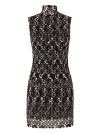 Sleeveless short dress [ SKU: 10190435873 ] black floral lace high neck sleeveless scalloped hem The item you receive may differ slightly from the item photographed. This is due to the artisanal nature with which all Missoni products are constructed. Composition Synthetic->Elastane18.0 % Metals & Alloys->Metallic Fibre9.0 % Synthetic->Rayon91.0 % Synthetic->Polyester82.0 % Reference DS25WG22BR012HS80DP
